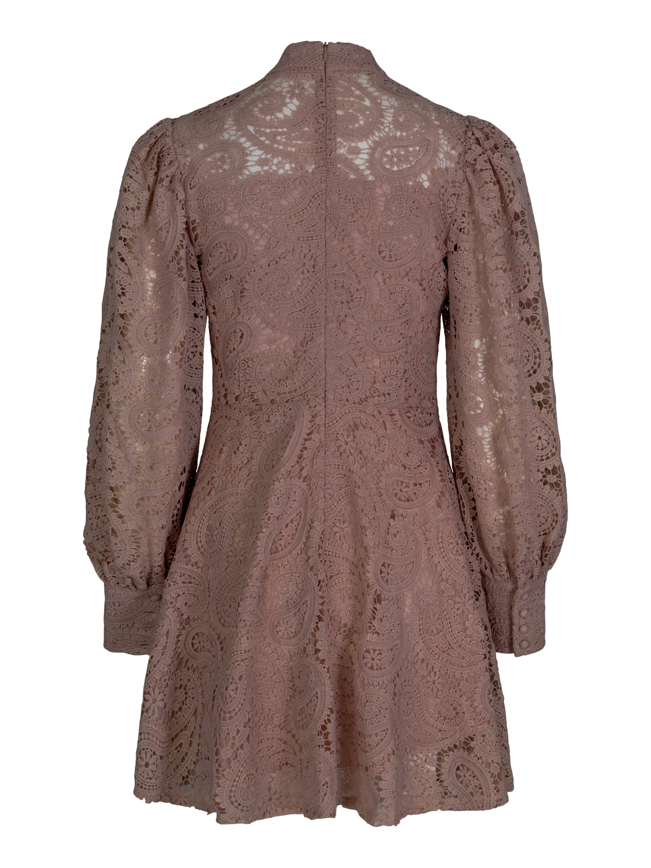 Kjolen har pynte-knapper hele veien ned, enkelt avtatt snitt i midjen. Glidelås i ryggen og knepping i armene. Denne kjolen føler man seg gjerne ekstra vakker i da den har et delikat snitt med vakre detaljer.