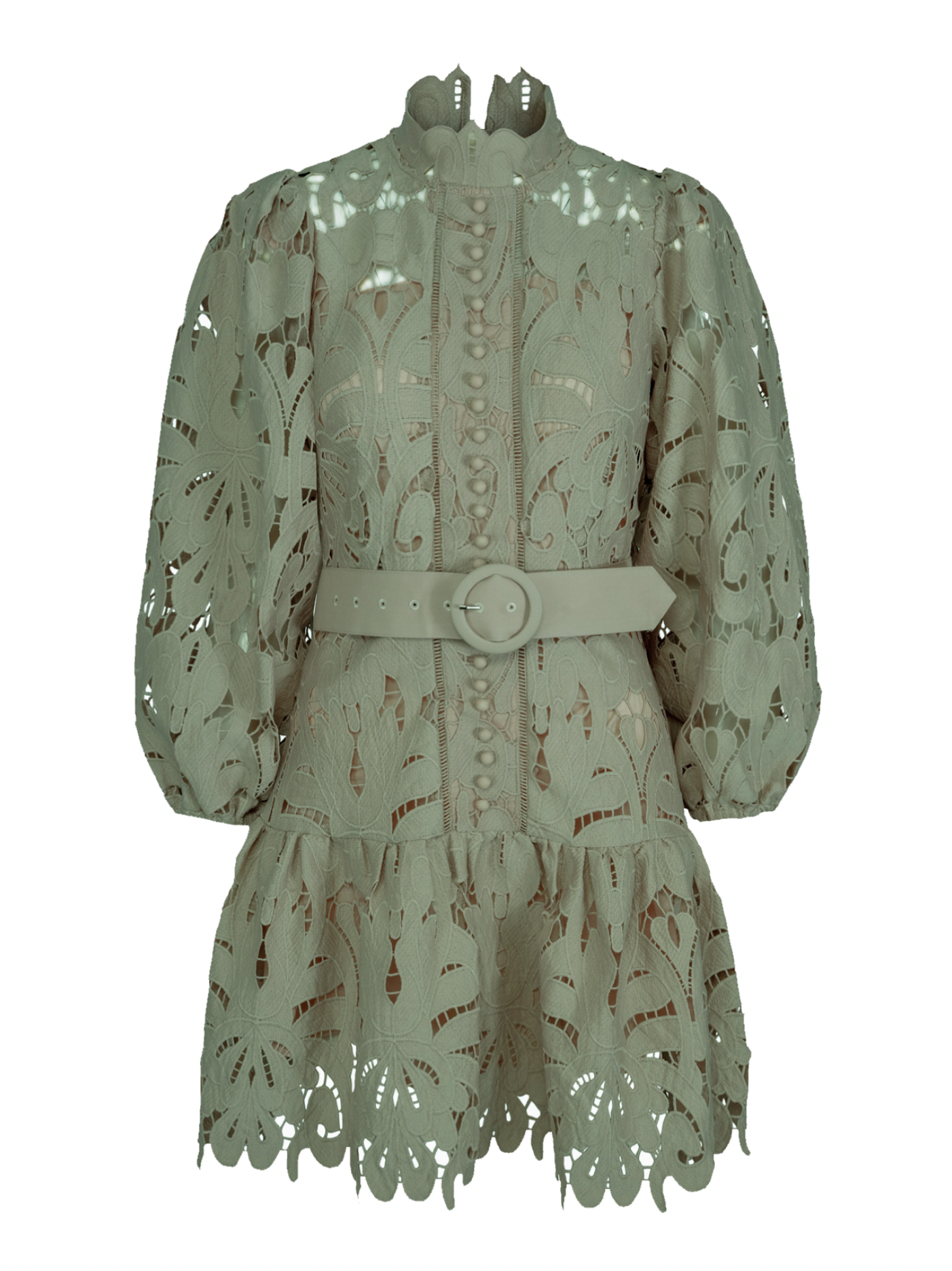 Lovely har trekte pynte-knapper i front, glidelås i ryggen, vide armer med puff, strikk i armene og belte i livet. Kjolen kommer kun i en lengde, denne går til midten av låret ca.