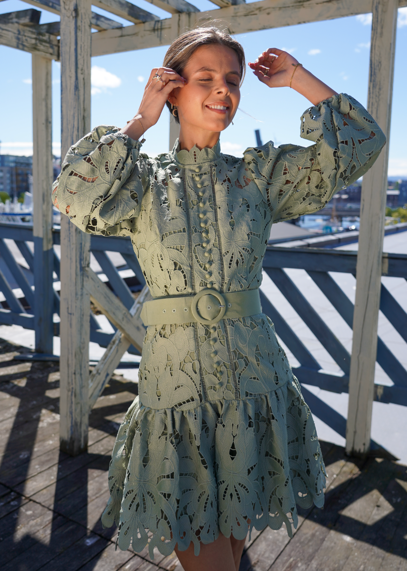 Vaskeinfo Vaskes på 30 grader i vaskepose for å holde blondene fra å bli hektet fast i andre plagg. Kjolen kan både strykes og steames på lav varme etter behov.