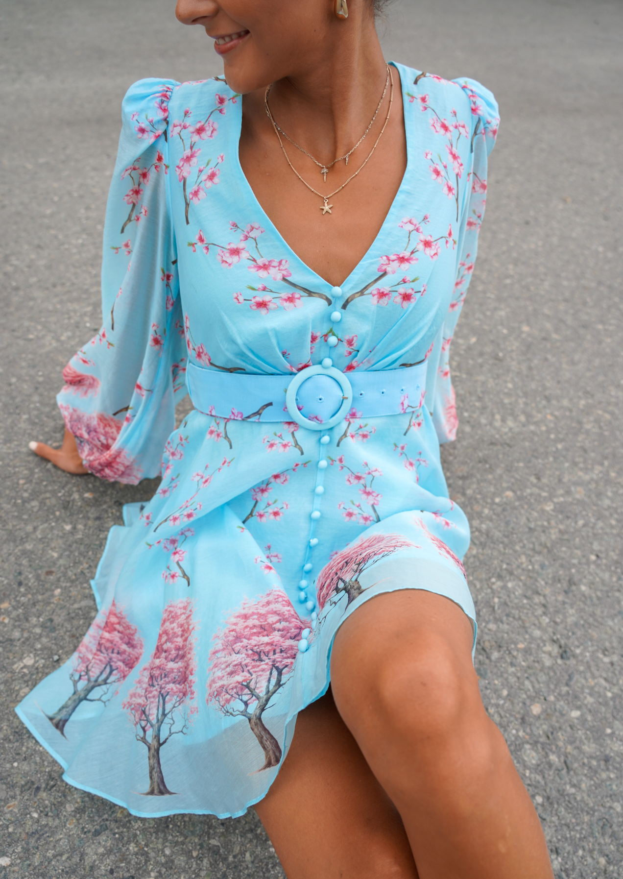 Golightly Queen kjole: short - Blue Blossom Print