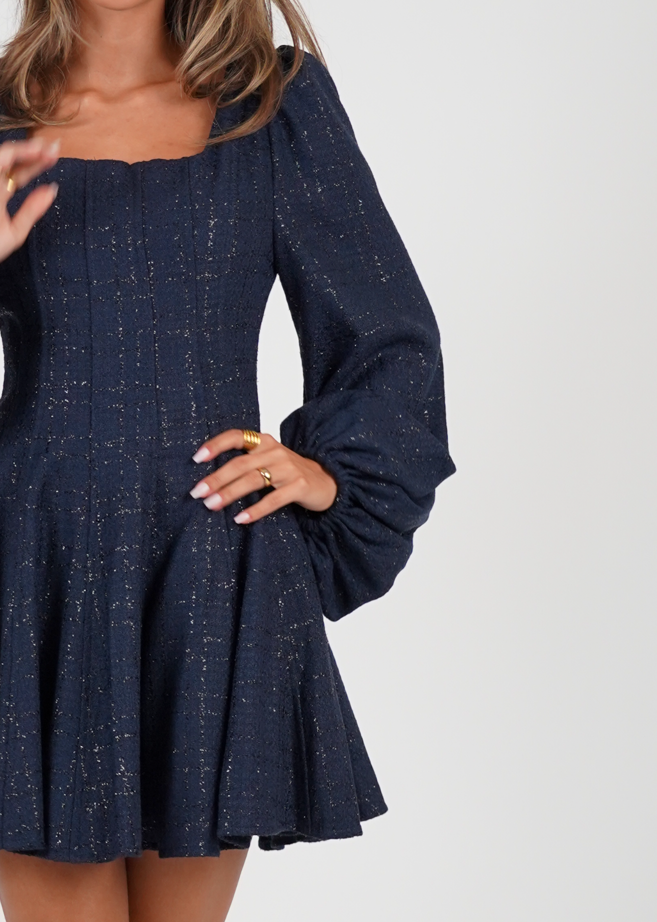 Golightly Sophie Tweed kjole - Midnight Blue